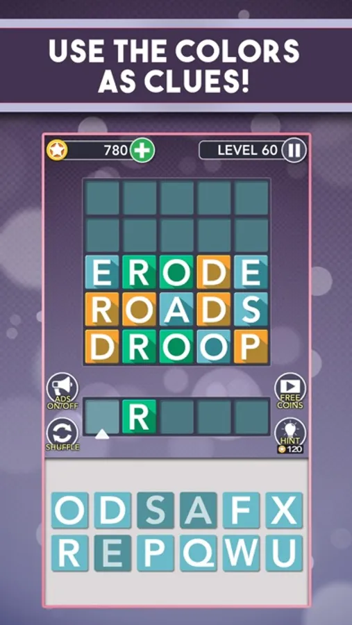 - Can't figure out the word jumble? Use coins to get a hint and win the level!