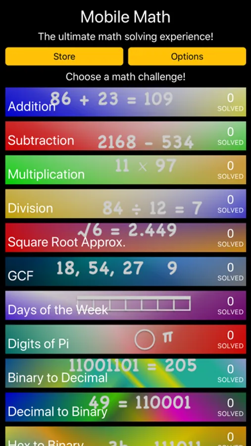 A must-have for math lovers. Solve the widest variety of randomly generated math problems from your iOS device.