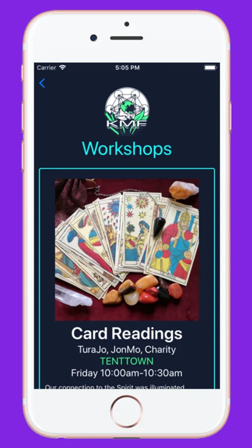Since this app is designed to work without Cell Service, you can check the Lineup Schedule and Workshop Schedule while you are at the event!