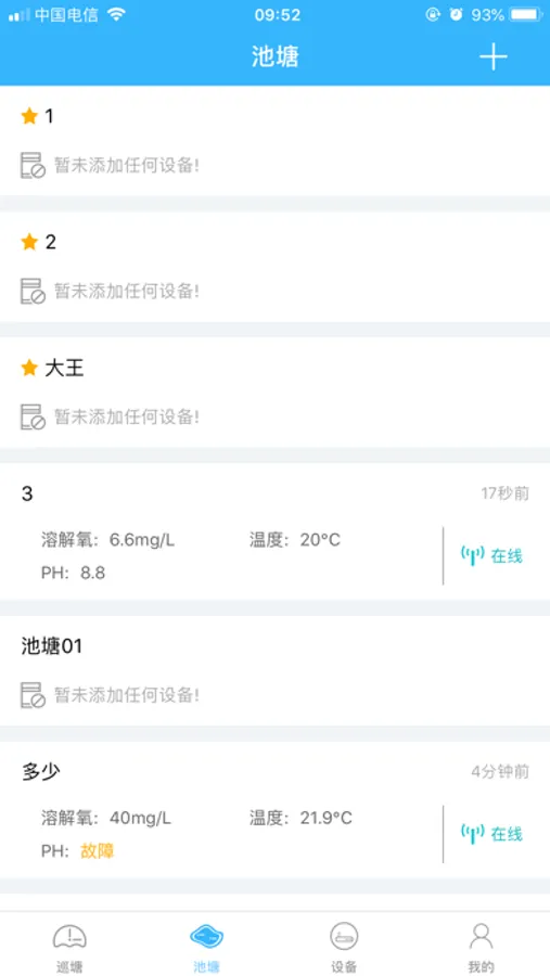 8.巡塘和池塘首页的加号都可以方便的进行池塘的添加.