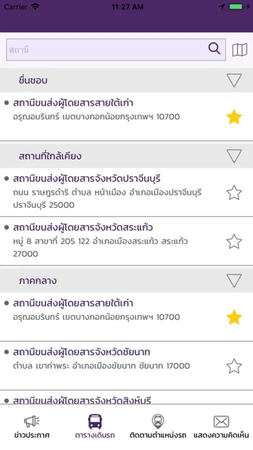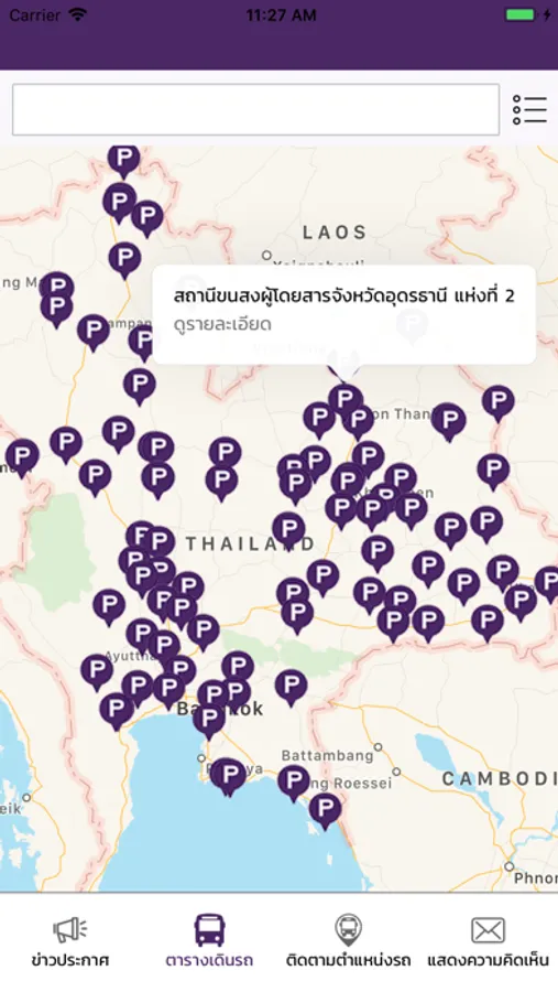- เลือกแสดงผลได้ตามสถานีขนส่งผู้โดยสาร