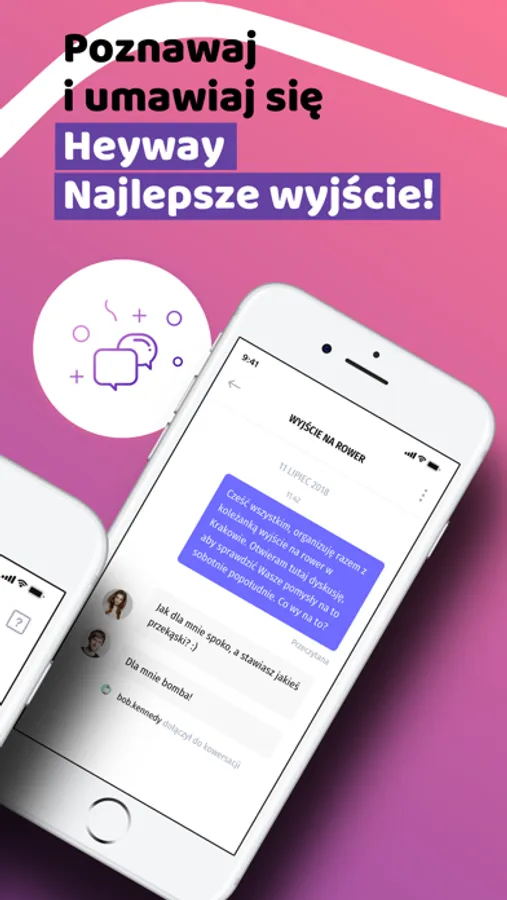 Przyzwyczailiśmy się (niesłusznie!), że poznawanie innych przez aplikacje jest jak giełda ludzi. A przecież naturalnym jest, że łączą nas miejsca, pasje oraz znajomi! Zresztą nie każde wyjście to musi być randka! Co z poznawaniem kolegów, koleżanek, innych par czy też grup znajomych? Gdy masz ochotę wyjść z kimś do kina, pójść na koncert lub szukasz towarzystwa do porannego joggingu, piszesz do znajomych. Co jeśli akurat nikt nie może, jesteś nowy w mieście, albo po prostu chcesz poznać innych pasjonatów tej dyscypliny? Dzięki aplikacji Heyway spotkasz osoby z Twojej okolicy, które mają ochotę dokładnie tak samo spędzić czas. Najwyższy czas się spotkać! Bez ściemy, bez retuszu i wyidealizowanych cech charakteru! Bez kontekstu i podtekstu, po prostu robicie coś razem, bo to lubicie, nawet jak jest to zwykły spacer z psem. We dwójkę, trójkę albo w większej grupie!