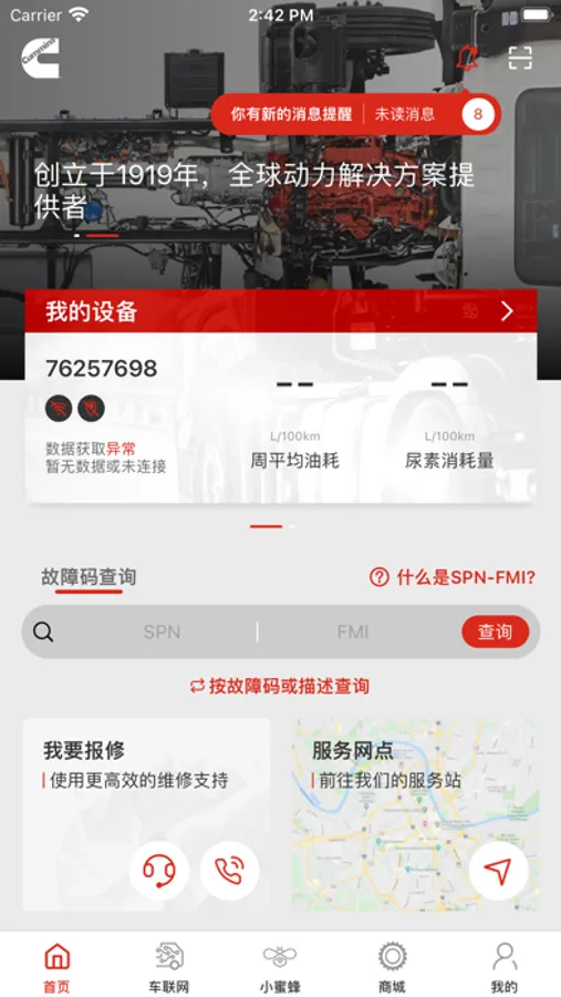 e路康明斯含技术培训、服务手册信息查询、服务工具、服务网点、正品零件查询、物流跟踪、 服务工单和智能诊断等功能,是康明斯后市场的专业信息实时共享平台和专业的诊断服务工具。为用户提供实时、便捷和专业的服务信息和方案,助力提高用户设备出勤率