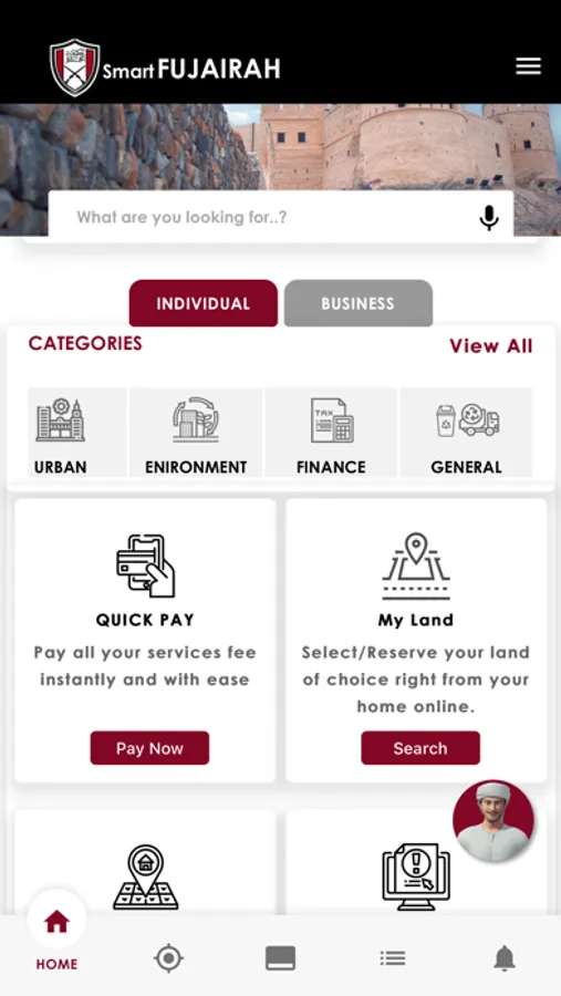 smartFujairah is part of Fujairah Municipality's plan to provide interactive smart channels and mediums for individuals and businesses segments living in Fujairah. We are trying our best to meet the customer's expectations and have provided some of the services, and are in incorporating more from time to time. The application provides information and fully functional services spanning almost every business sector of the Municipality. The latest feature includes 'Customer Wallet'. Beside this some of the features are: