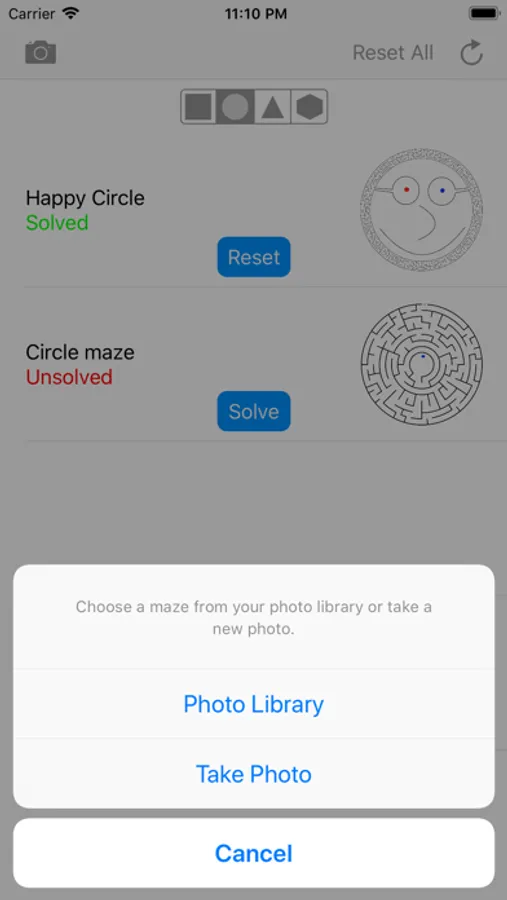 Simply take a picture of your maze or upload a saved maze from your phone. Follow the prompts to set the start and end positions. Tap the solve button and wait for Maze Solver to present the solution. It's that easy. Just make sure to take your picture with good lighting.