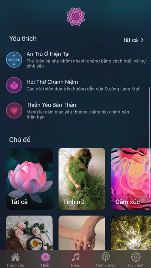 Với các bài thiền đơn giản nhưng hiệu quả, phù hợp với cuộc sống bận rộn và năng động, người dùng dễ dàng tìm lại sự bình yên trong tâm hồn, kết nối và nhận thức về bản thân.