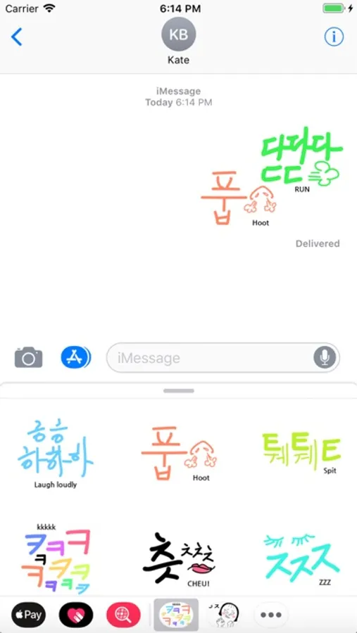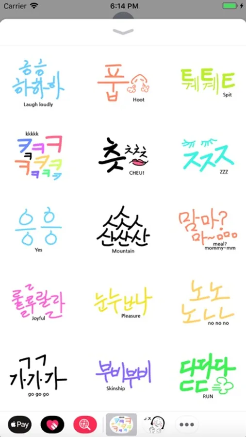 These are imitative and mimetic words which are written in Korean characters, Hangul. You can use it for your expressions when texting with message on your iPhone. I hope you enjoy it, if you're interested in Hangul.
