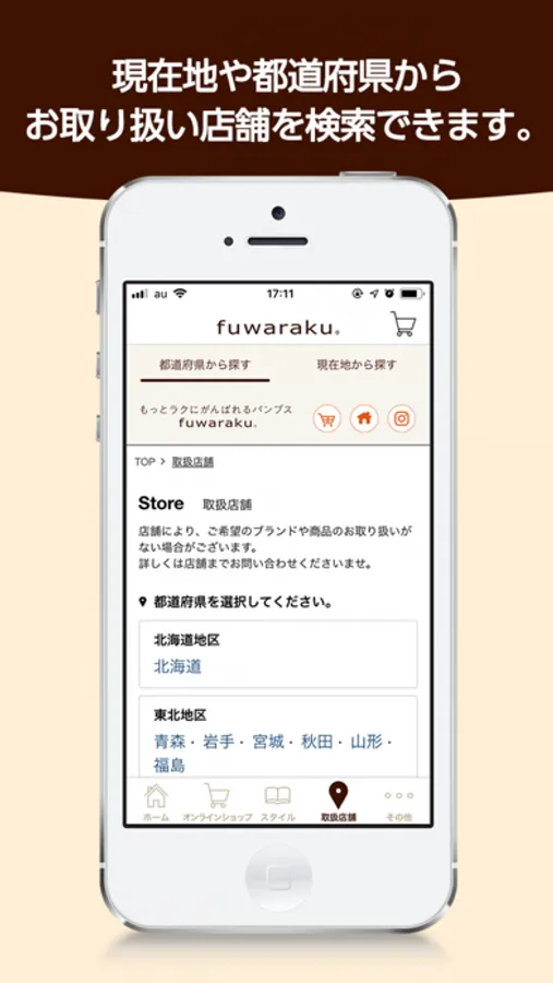 現在地や都道府県からお取り扱い店舗を検索できます。