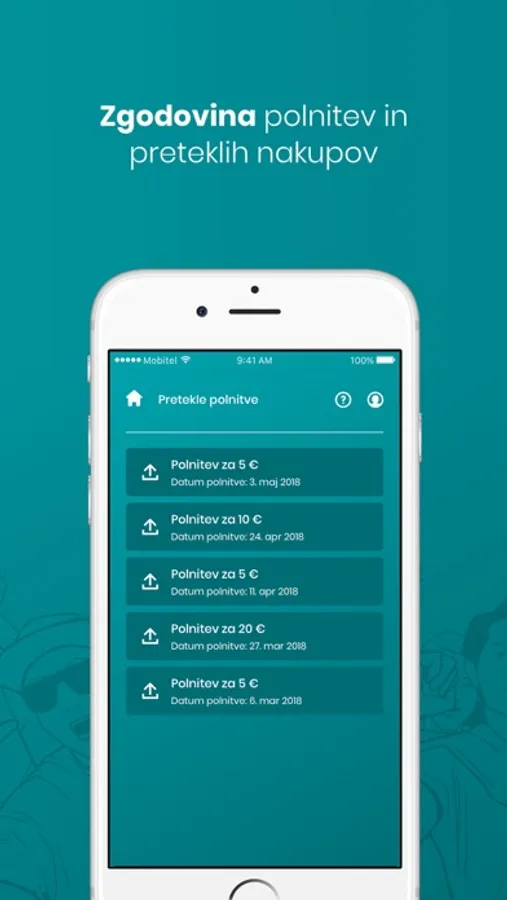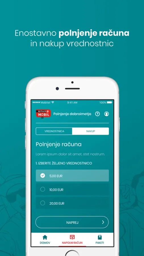 • nakup vrednostnic, ki jih znotraj aplikacije lahko pošljete tudi drugim osebam,