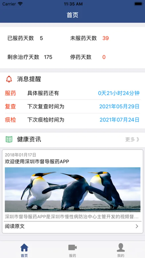 本应用面向深圳市结核病患者,结核病患者可利用APP拍摄服药视频,视频上传至结核病管理系统中,督导医生根据视频情况对病人进行督导,减少病人现场服药次数,提高服务水平。