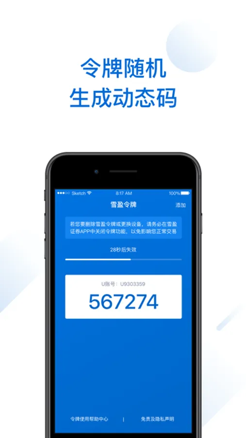 雪盈令牌是雪盈证券为进一步提升用户账号安全性而推出的一款产品。将雪盈令牌和雪盈交易账号绑定后,令牌将提供动态生成的6位数字密码,该密码每30秒自动更新一次。