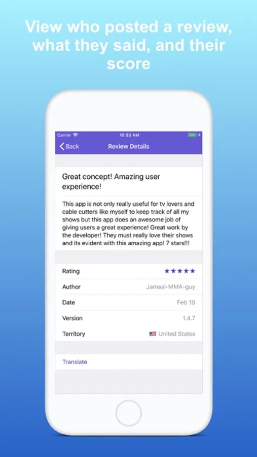 If a review is written in a language you don't read, the app can translate it to English.