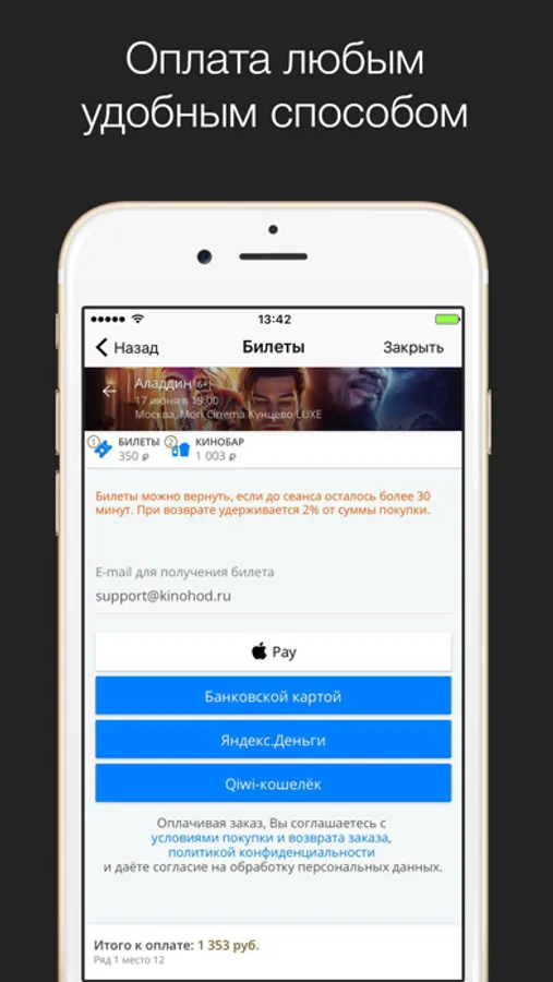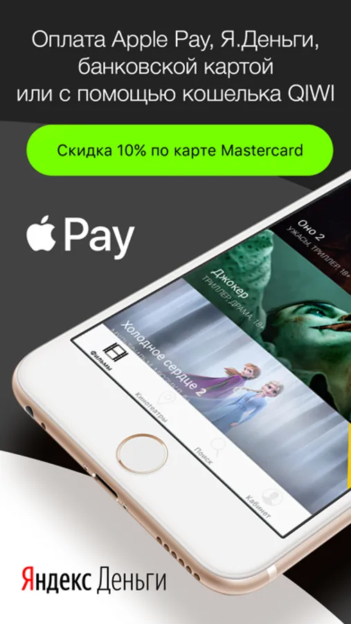- Оплата Apple Pay, банковской картой или Qiwi Кошелек