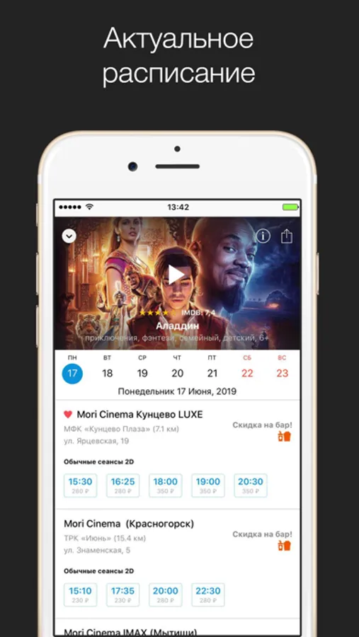 - Актуальное расписание сеансов