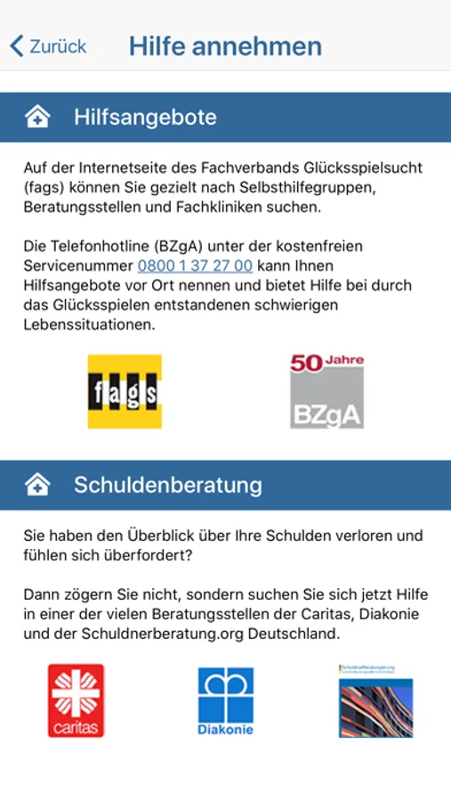 "Neustart" ist eine kostenlose Selbsthilfe-App, die sich an Personen mit Glückspielproblemen richtet. Die App soll in Kombination mit dem kostenlosen Selbsthilfe-Programm „Neustart“ (www.neustart-spielerhilfe.de) angewendet werden. Das kostenlose Portal unterstützt Menschen mit Spielproblemen dabei, Probleme besser zu meistern, die direkt oder indirekt mit dem Glücksspielen in Zusammenhang stehen.