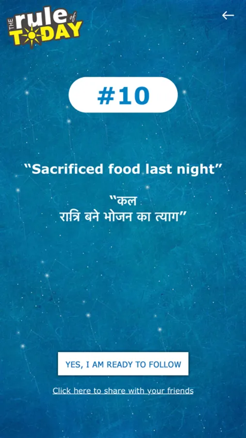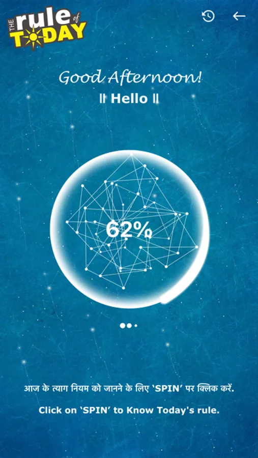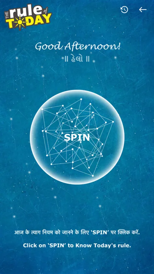 It will help you to set an Alarm to pick a random basis Rule(नियम). In case you already followed the rule recently and wants to change then again you can click on the SPIN button. It will help to find new Rule.