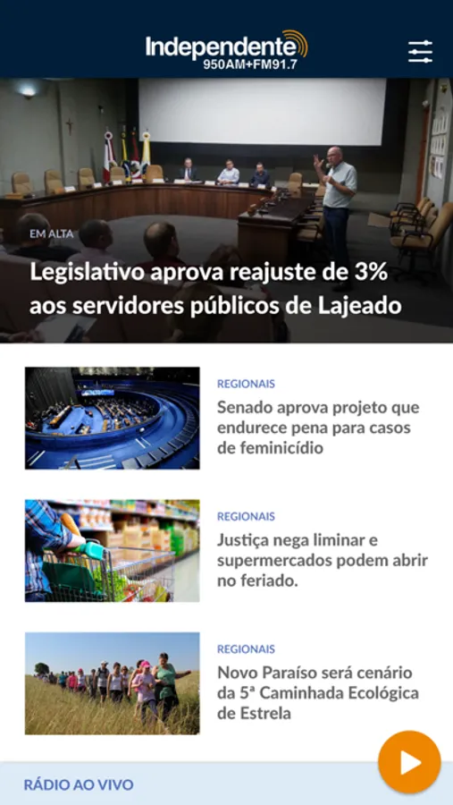 O aplicativo Rádio Independente permite que você ouça a programação ao vivo da emissora líder de audiência no segmento do radiojornalismo no Vale do Taquari. Fique por dentro das principais notícias da região, Brasil e do mundo. Aqui você encontra informações do trânsito, polícia, previsão do tempo, falecimentos, esporte, reportagens, entrevistas e variedades.