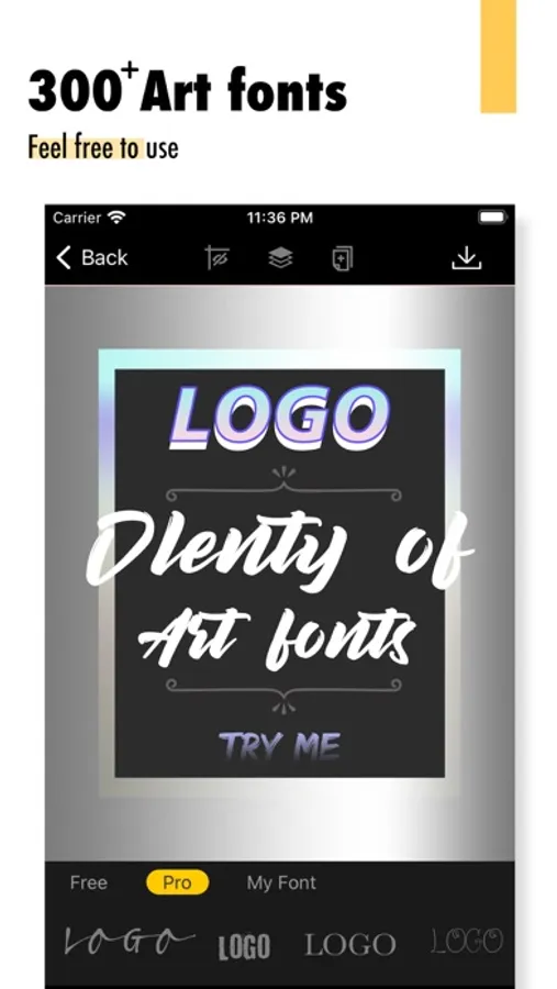 2. Built-in a large number of fonts, symbols, graphics and backgrounds to make your icons stand out from the crowd.