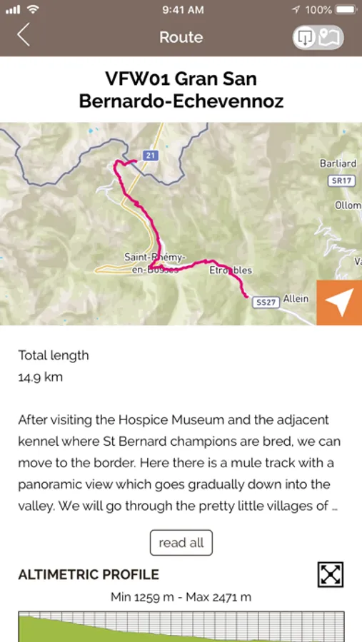 This app allows easy navigation on self guided holidays, walking and cycling thousands of kilometers on the Via Francigena, the Camino from the Great St. Bernard Pass to Rome, the complete St. Francis route from Chiusi della Verna to Rome, and the Path of Gods from Bologna to Florence.