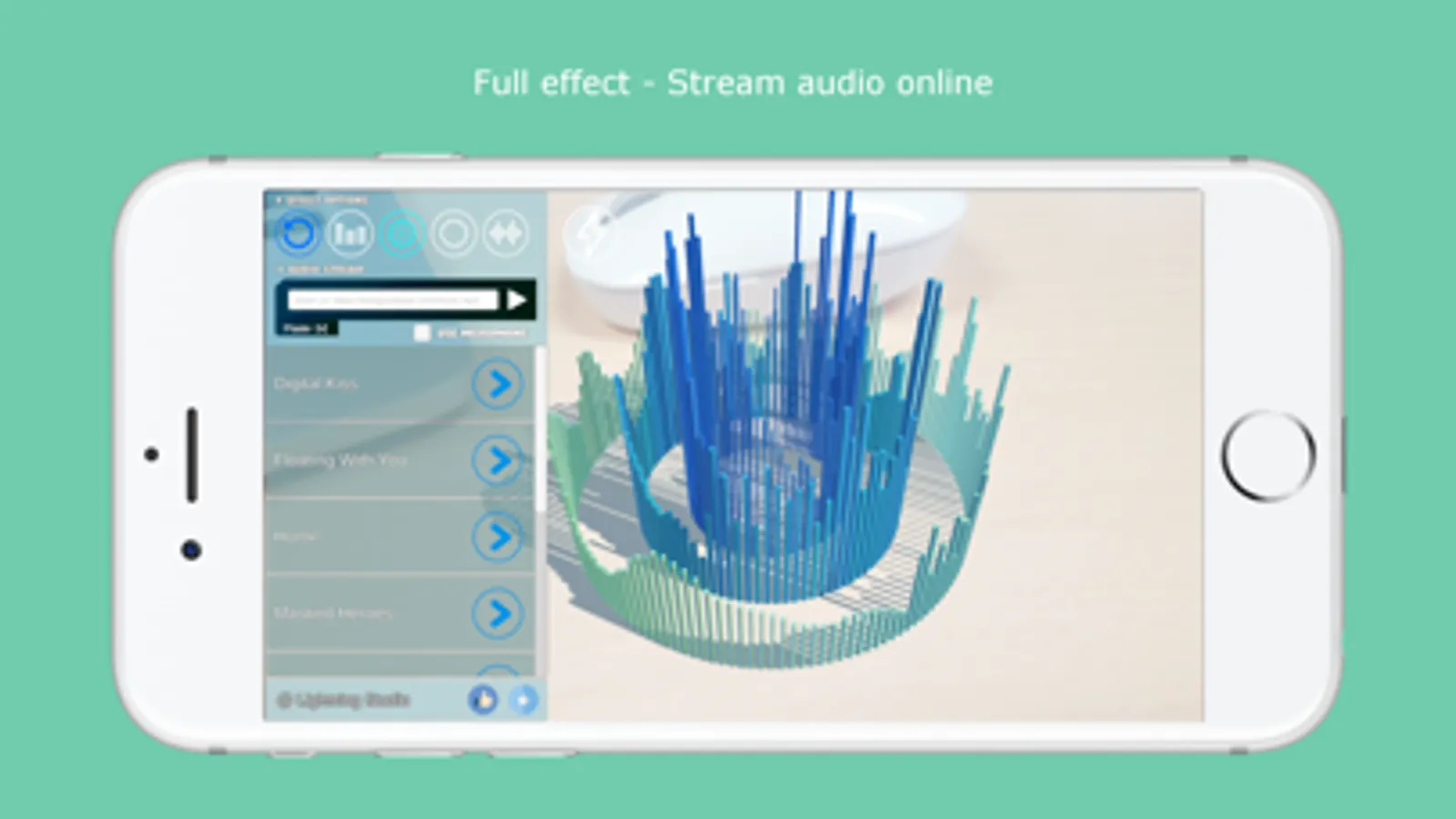 Augmented reality with camera. Audio Spectrum planed ground