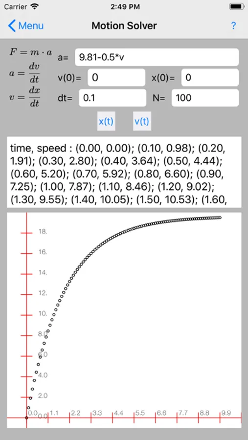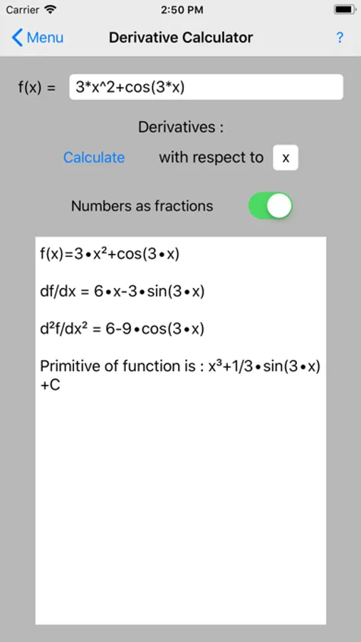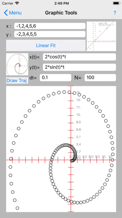 The physics calculator of motion will help you solving problems of motion in physics. It will solve equations of motion for you and draw the trajectory of your particle. Another helpful tool is the derivative calculator. It will do symbolic derivatives for you. Just write the function press the calculate button and you will have the first and second derivative lightning fast. More for most simple functions the calculator will find a primitive (anti-derivative) for you. The last tool is a simple linear fit that will save you the time of calculating slopes and y-intercept. All of this is done offline so no internet connection is needed.