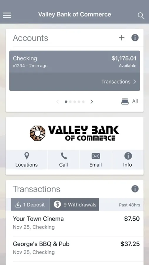 To use the Valley Bank of Commerce app, you must be enrolled as a Valley Bank of Commerce Internet Banking user. If you currently use our Internet Banking, simply download the app, launch it, and login with the same Internet Banking credentials.