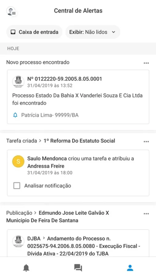• Receber na sua central de alertas as novas publicações em diários oficiais que surgiram com termos como sua OAB, seu nome, nome do seu cliente ou nome de uma empresa, por exemplo.