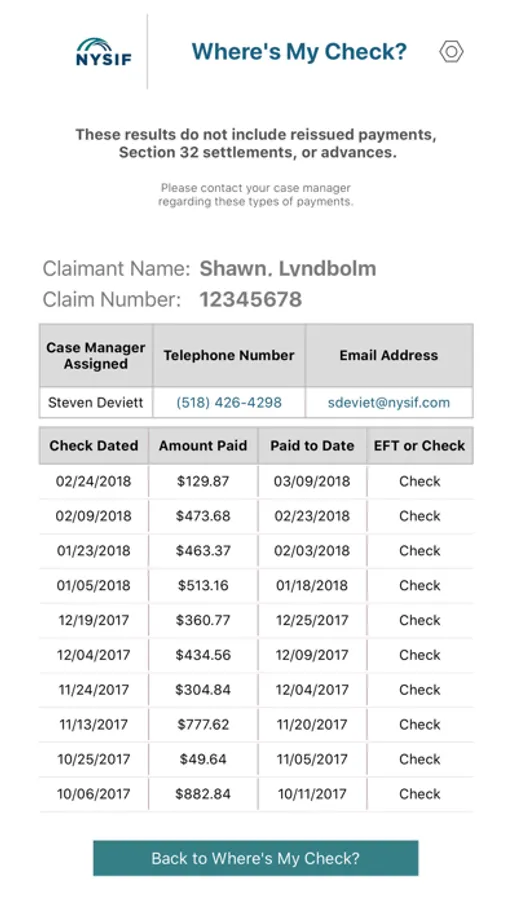 Receive information about the benefit payment and/or the NYSIF case manager for the claim.