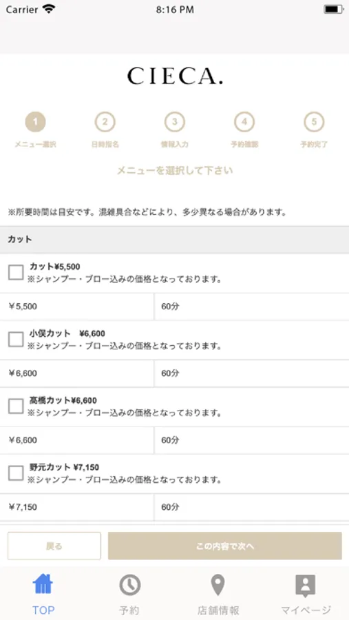 指名予約にも対応しているので担当スタッフのスケジュールを確認してからの予約が可能です。