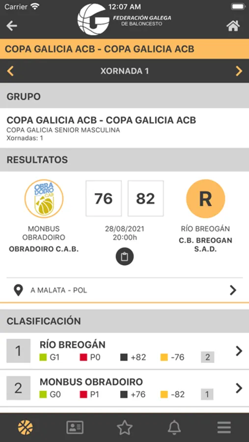 Agora tamén podes seguir os partidos en directo e consultar as súas estatísticas.