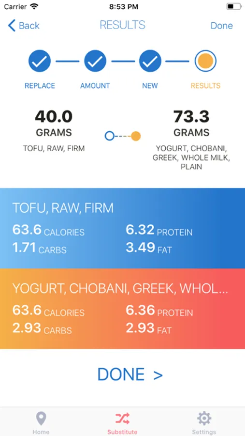 Using a calculator to compare foods can be time consuming and confusing - let us do the work by comparing macros and showing you the best substitution.