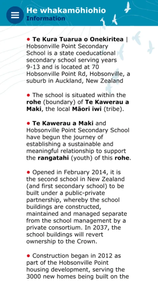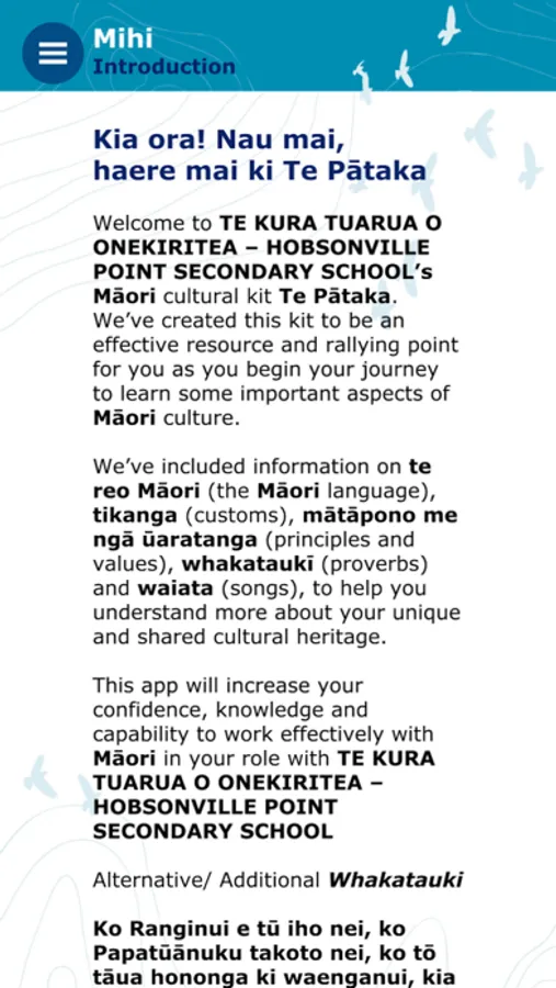 Te Pātaka is an educational resource for Hobsonville Point Secondary students and employees to learn basic te reo Māori and protocol to support their day to day mahi (work).