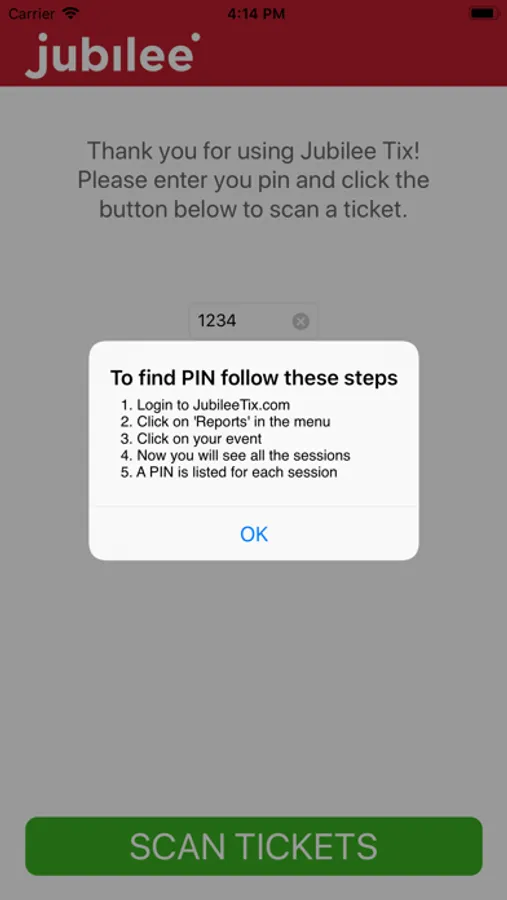 Use this app to scan tickets that have been generated from your event on JubileeTix.com