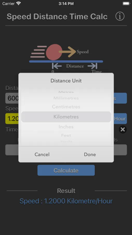 This app can help you to easily calculate across different units. For example if you know the distance in kilometers, you can input the values in Km and ask the app to give you the result in Miles per hour. Similarly you can select from a range of other units to convert.