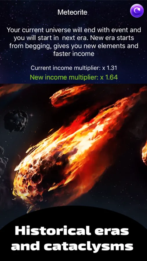 Idle World Evo is free idle game. Build your world from smallest particles through world eras and most significant historical events and cataclysms. Relax about your world - it grows even when you are away.