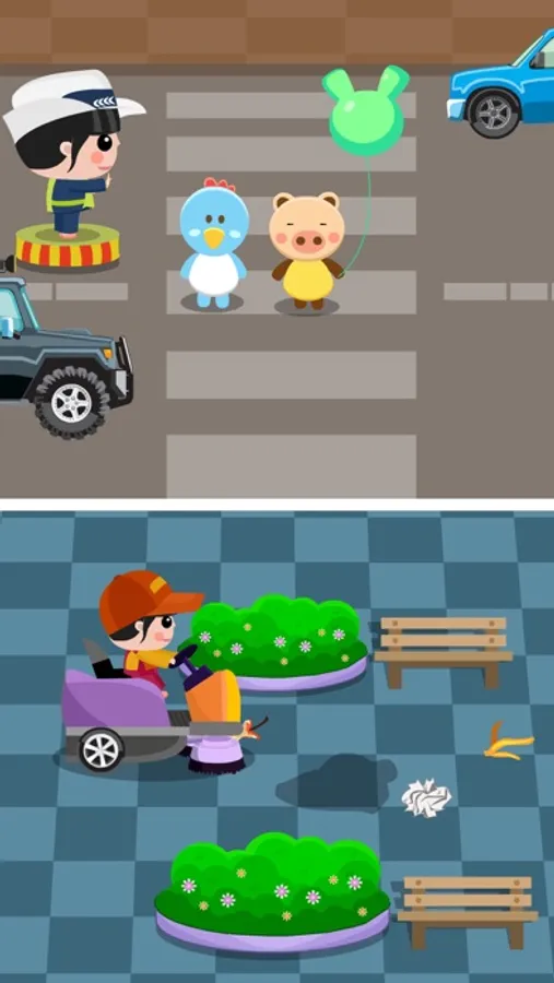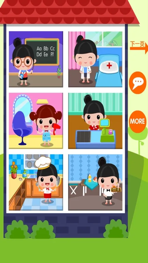 交警、农民、医生、厨师、司机、老师、建筑工人、服务员、清洁工、消防员、理发师、收银员,快来体验12种常见的职业角色扮演游戏!