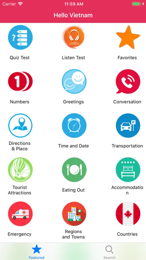 Learn Vietnamese For Travel has 1470 common phrase in Vietnamese free with sound and you can use all of them without network. Very useful for you learn and go to travel to the world. Learn vietnamese grammar is very easy!