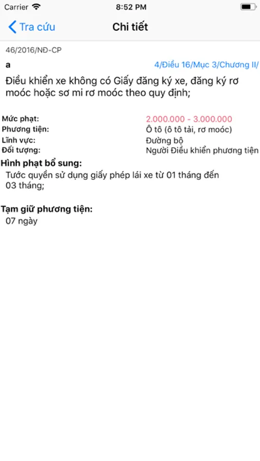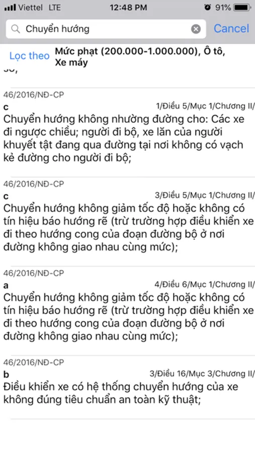 3. Lọc nhanh theo từng loại văn bản hoặc mức phạt và phương tiện.