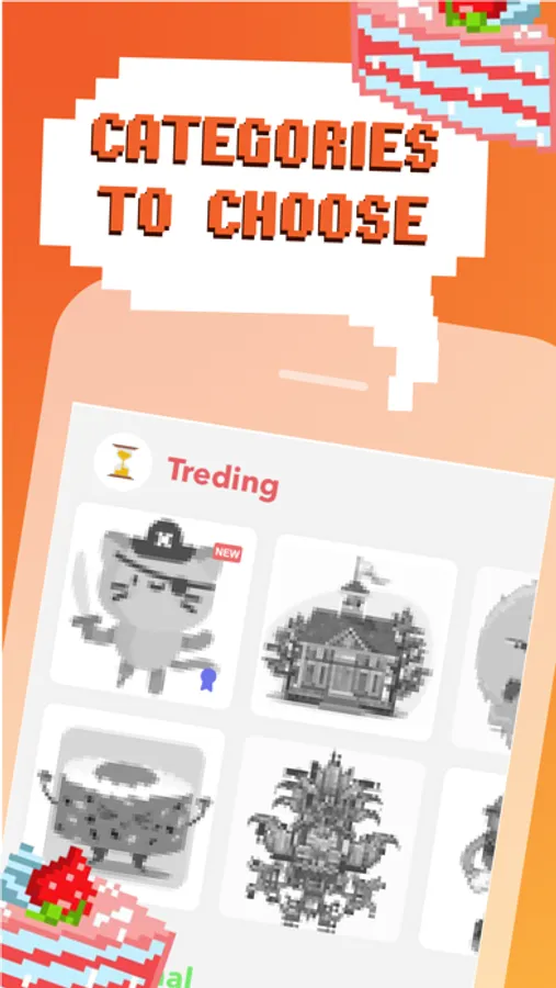 Choose from a wide range of fascinating pictures and color the ones you like to create your own artworks!