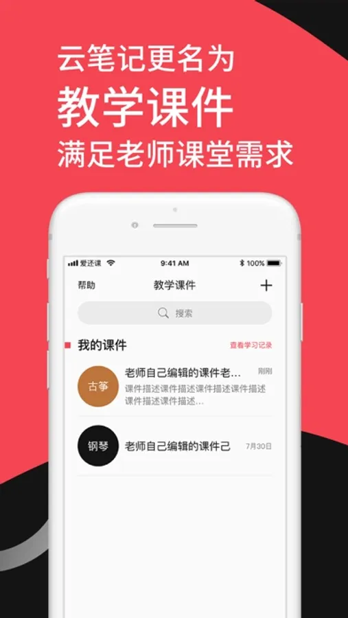 【爱还课】是一款针对音乐教学领域的教学工具,通过三大创新功能:云笔记、在线还课、在线陪练,完美的解决了线下音乐教育学生、家长、老师三端遇到的问题!