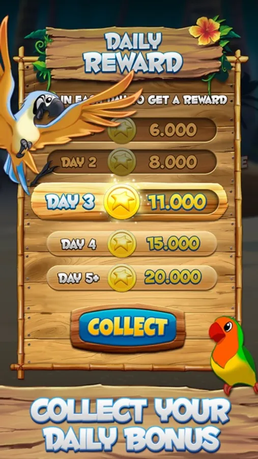 -Daily bonus The more days in a row you enter, the bigger your reward will be!