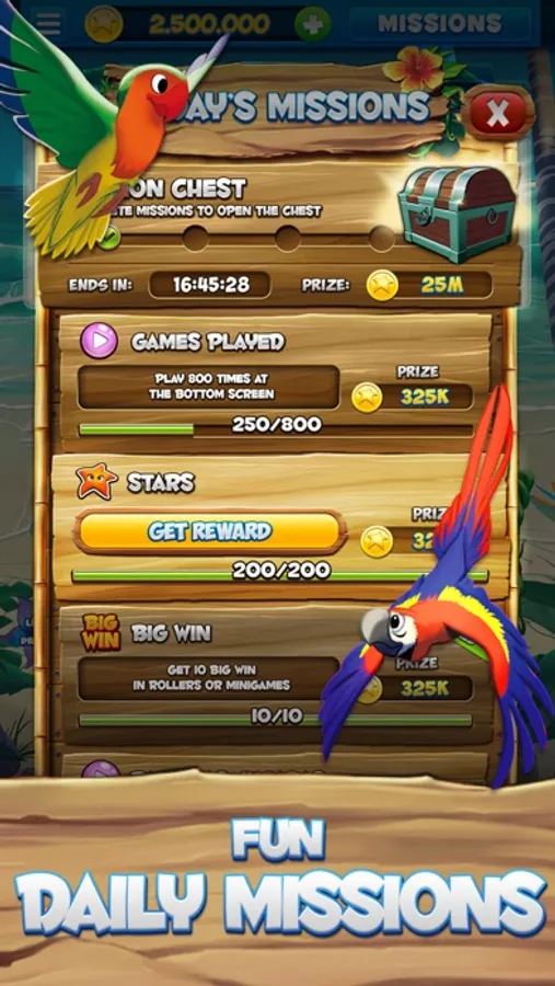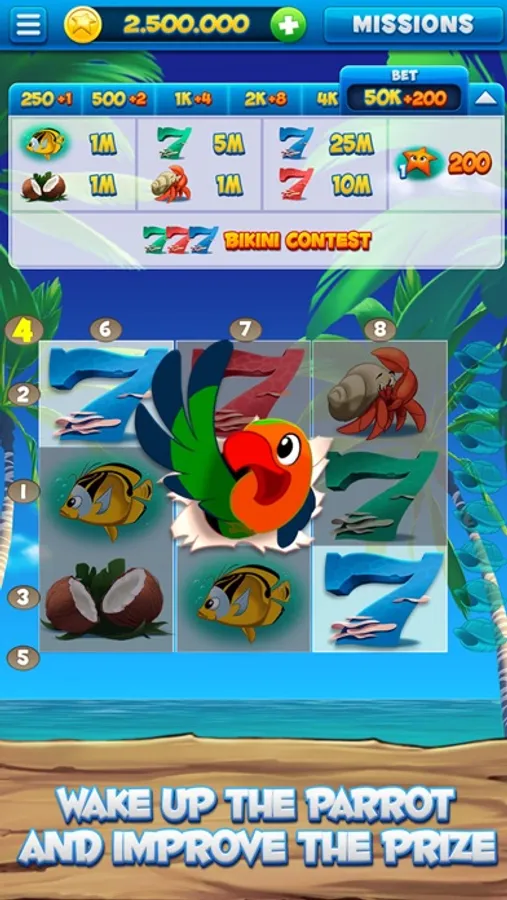 What are the missions? Everyday, there are three to six missions to complete in the Slot Machine. In order to be able to participate, you need a minimum bet of 1,000 coins.