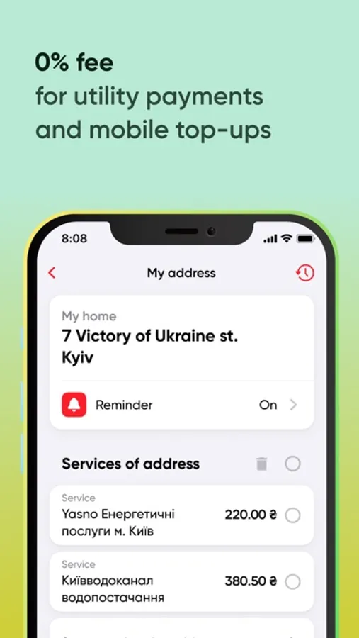 - pay for any other services (Internet, TV, etc. or by IBAN details)