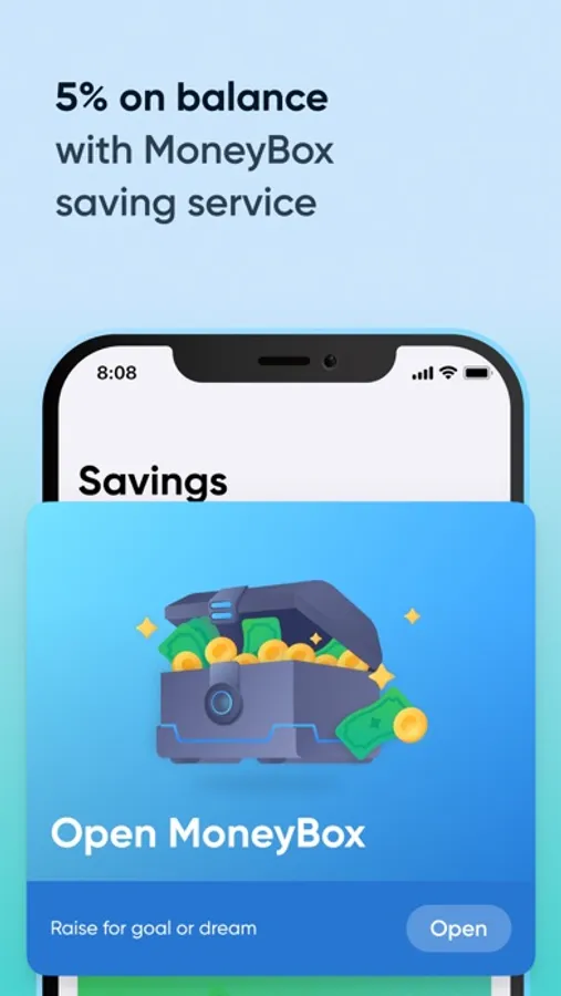 - collect money not in the bank but in MoneyBox – and get 5% per annum on the balance
