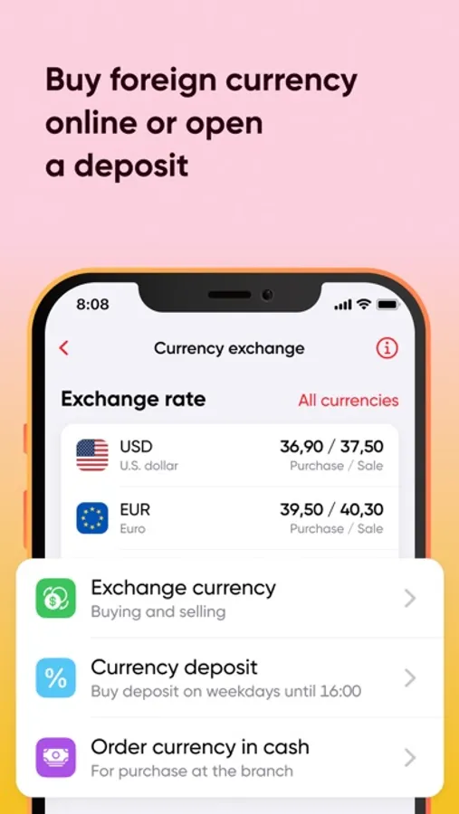 - buy dollars and euros in the application up to 50,000 UAH per month