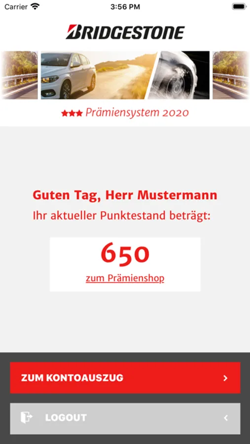 Puntkestand-App für das Bridgestone Prämiensystem. Erhalten Sie Benachrichtigungen über Punktestand-Aktualisierungen.