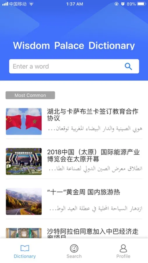 Translation of the Wisdom Palace is a free Chinese-Arab bilingual dictionary and translation software developed by Cyrus Internet Technology owned by the Wisdom Palace Group. The dictionary is interpreted, translated, word-to-speech and phrased by complete words and expressions. Examples include mainstream popular vocabulary, large amounts of phrases and examples, complete collection of authoritative dictionary data, rich and comprehensive lexicon, accurate word searching, covering a total of 400000 entries and phrases, and 200000 large sample sentences.