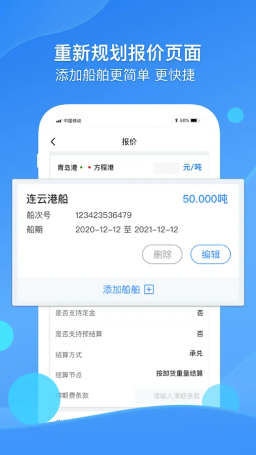 物泊水运APP的船东版本,适用于有水上运输能力的承运船舶公司,可参与运输委托的竞价,发布船期信息,组织船舶运输。