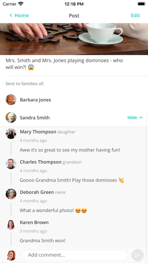 As a relative, you will receive medical, administrative and care-related posts straight to your phone – take part in your loved ones' everyday life, anywhere and anytime. You can comment on news and directly access nursing staff.