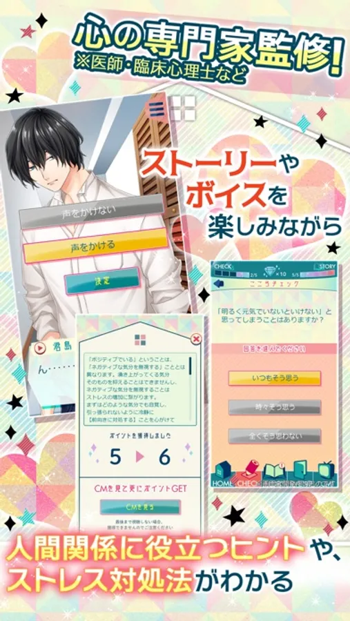 恋愛ストーリーを楽しみながら、人間関係で使えるテクニックやストレス対処法など"こころを軽く、楽にするヒント"が得られます。